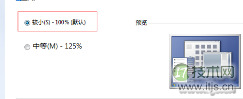第5步:注销后回到桌面,发现桌面图标变大,再回到刚才的界面,选择原来默认的”较小“,如图