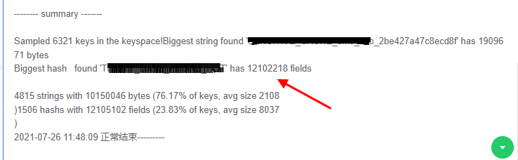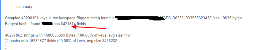 2. 经过分析找出了hash类型的Bigkey有8421874个fields,正是这个Bigkey导致迁移时间太长,超过了迁移时间限制,导致工单失败了。