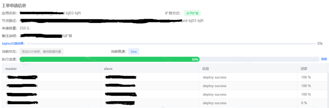 4.Bigkey优化后,扩容的工单可以重试,完成集群扩容操作。