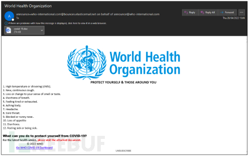 冒充世界卫生组织恶意软件背后的横空操纵者冒充世界卫生组织(WHO),分发 Nerbian RAT 恶意软件,出世据称该组织正在向目标发送COVID-19信息。新型
