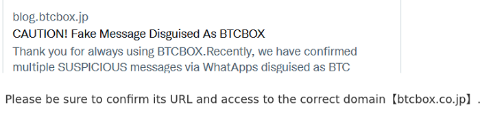 BTCBOX 发出假冒网站警告,提醒用户分辨真实域名。