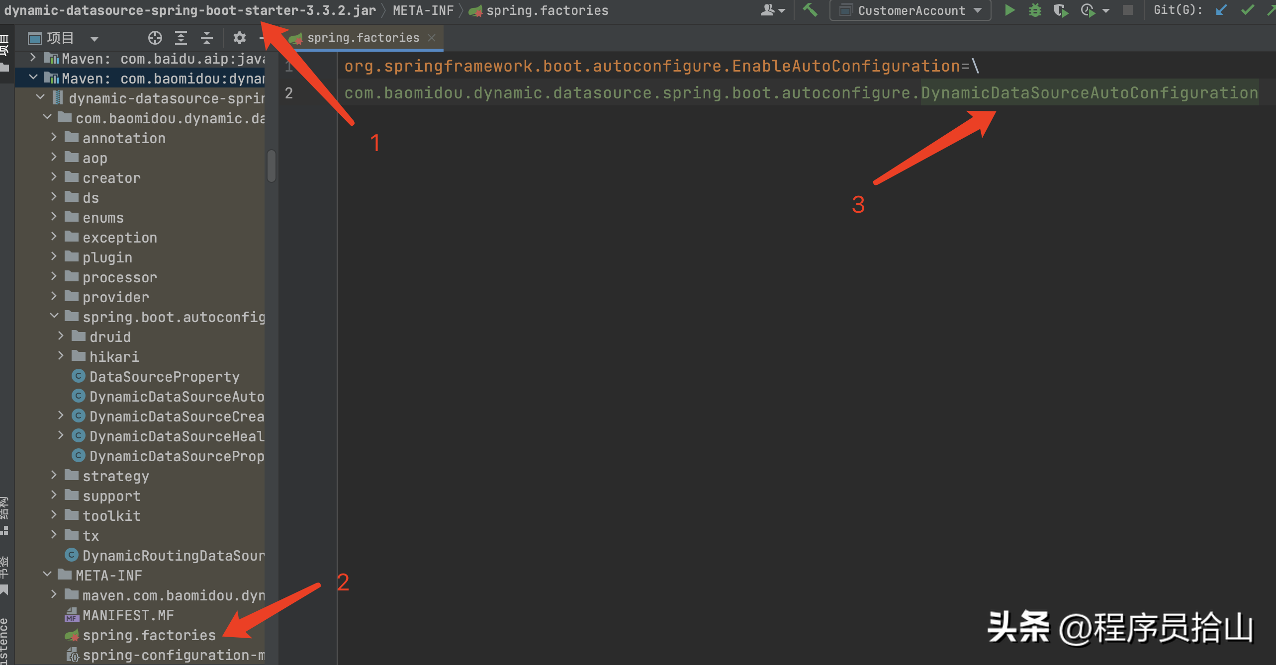 打开dynamic-datasource-spring-boot-starter.jar包,在spring.factories文件中,高防服务器可以看到配置了DynamicDataSourceAutoConfiguration启动类。