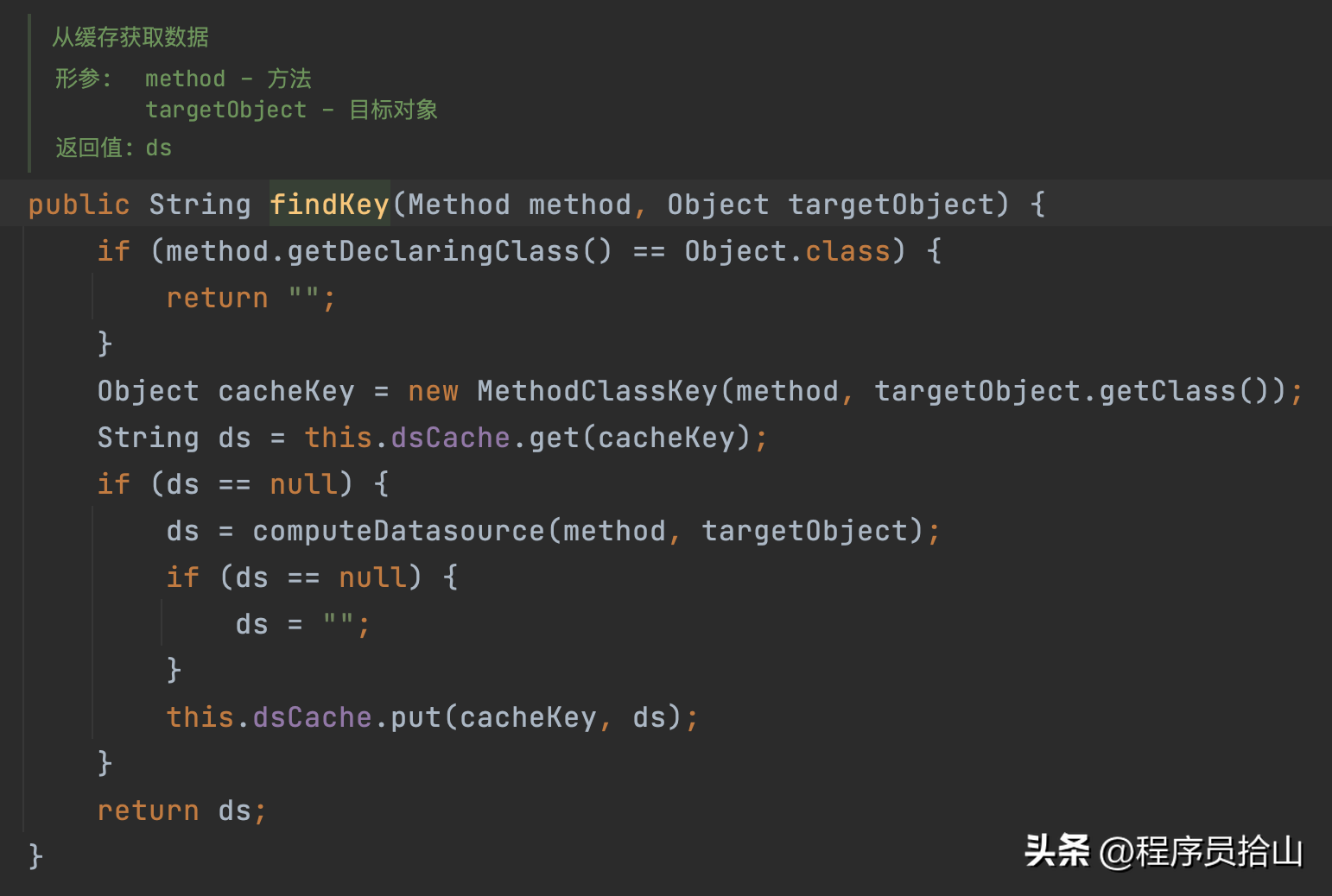 在determineDatasourceKey方法中,会调用提前注入的DataSourceClassResolver类的findKey方法,判断类或者方法上是否指定了DS注解。IT技术网
