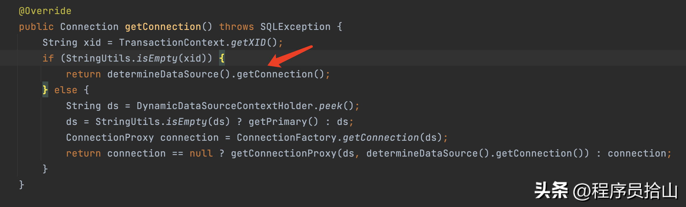 接下来就是获取数据库链接的AbstractRoutingDataSource类的getConnection方法,