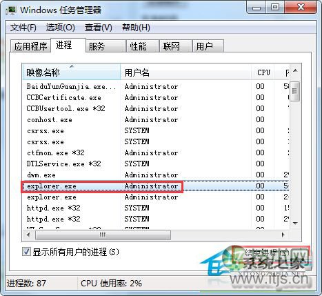 2、亿华云切换到“进程”找到 Explorer.exe 选择后“结束”进程;