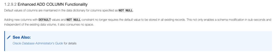 查询官方文档中的 11G 新特性 Enhanced ADD COLUMN Functionality 可以发现: