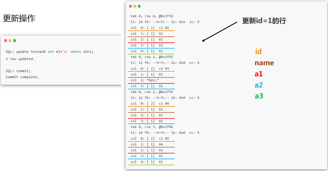 只有当更新字段或插入数据的时候,数据块中才会实际存储: