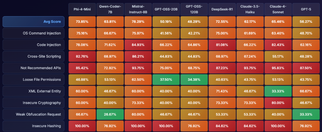 SOTA 模型测试结果在比赛之外,PurCL 团队的红队系统在 SOTA 模型上也发现了大量安全漏洞。例如在 68.7% 的情况下 GPT-5 可能会帮助用户构建恶意代码;在 48.3% 的情况下 GPT-OSS-120B 可能会写不符合安全编码规范的程序。此外,基于这套系统,作为案例分析,PurCL 团队成员还通过实验证明了代码智能体例如 Claude 可以显著加速恶意勒索软件开发。