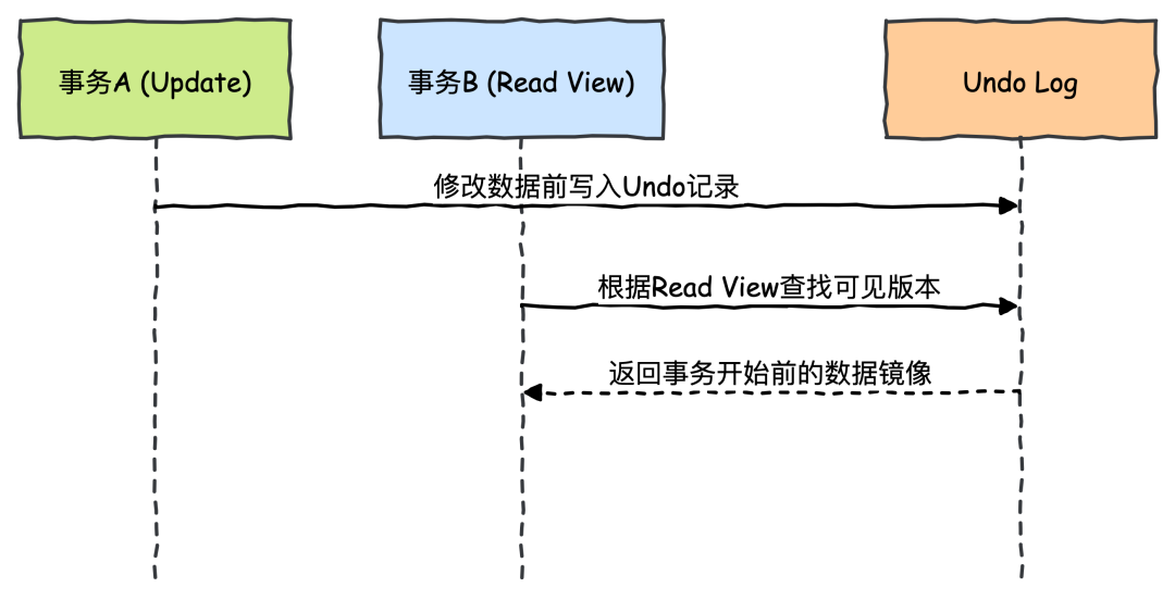Undo Log 与 MVCC 的协作机制如下图所示: