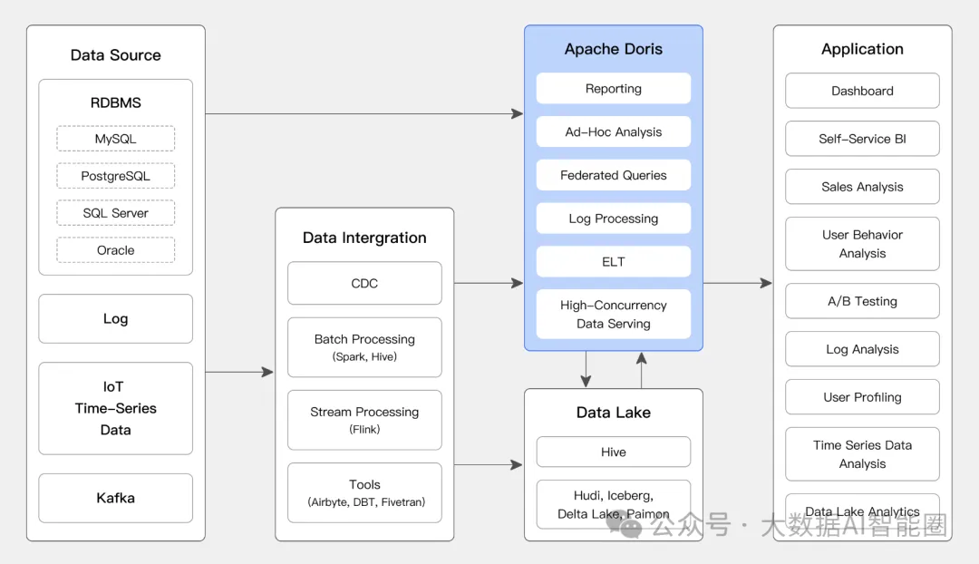 性能方面,Doris采用列式存储技术,对数据进行编码与压缩,大幅优化查询性能和存储压缩比。它的查询引擎基于MPP架构,支持向量化执行,能高效处理复杂分析查询,实现低延迟实时分析。