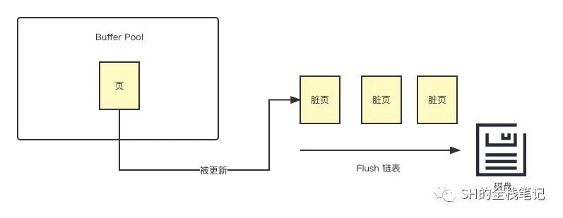 这个其实要通过 MySQL 后台线程来刷的,在 Buffer Pool 中被修改的数据刷次过的 Page(页)都会被标记成脏页,放到一个链表(Flush 链表)里。多久