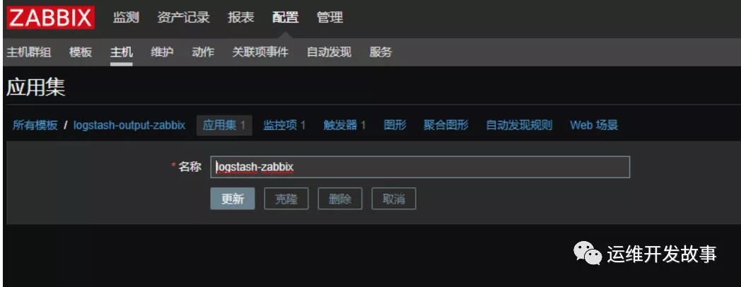 4.2 zabbix平台配置日志告警登录zabbix web平台,选择配置—->模板—->创建模板,名称定为logstash-output-zabbix,如下图所示: