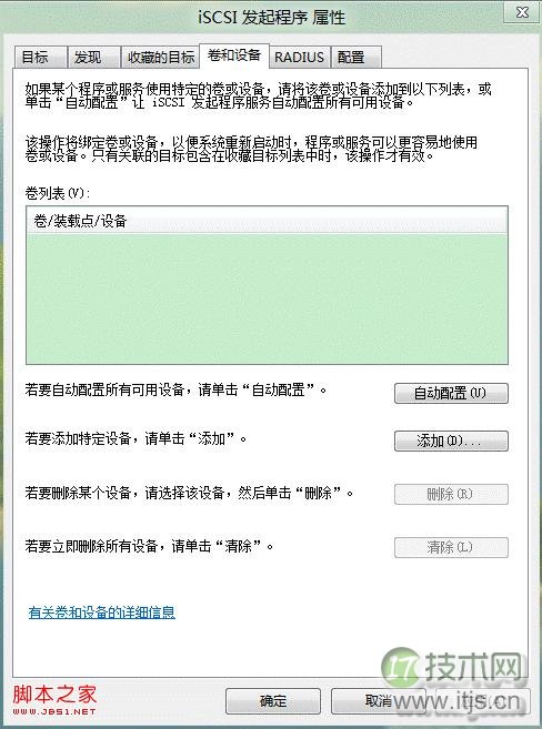 此外,ISCSI发起程序还可自动配置某个程序或服务使用的特定的卷或设备。操作时,在“卷和设备”选项页面,点击“自动配置”即可。亿华云
