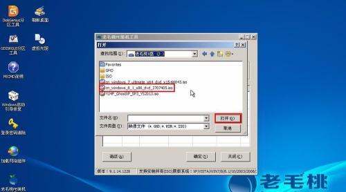 4.1在老毛桃软件中,点击“选择文件”按钮,选择您事先准备好的系统镜像文件。