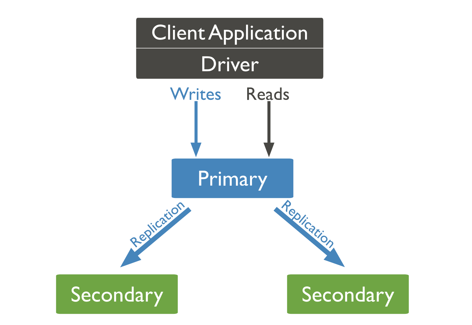 副本集模式包含一个主节点(Primary)和一个或多个从节点(Secondary),这一点与主从复制模式类似且主从节点的源码下载作用也类似。相较于主从复制模式,副本集模式的优势是当主节点发生故障时,副本集可以自动投票产生新的主节点,并引导其余的从节点连接新的主节点。副本集架构如下图所示: