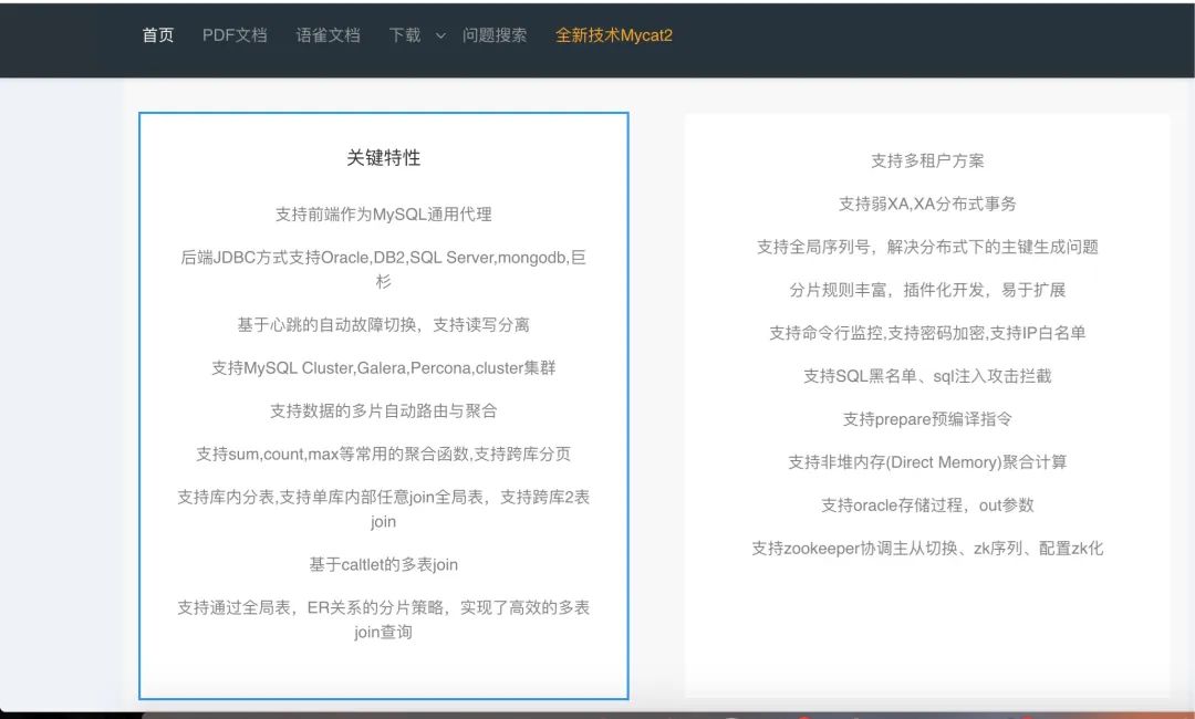 实际上,mycat 作为分库分表的中间件,也有许多的优势,例如下面官网的介绍。