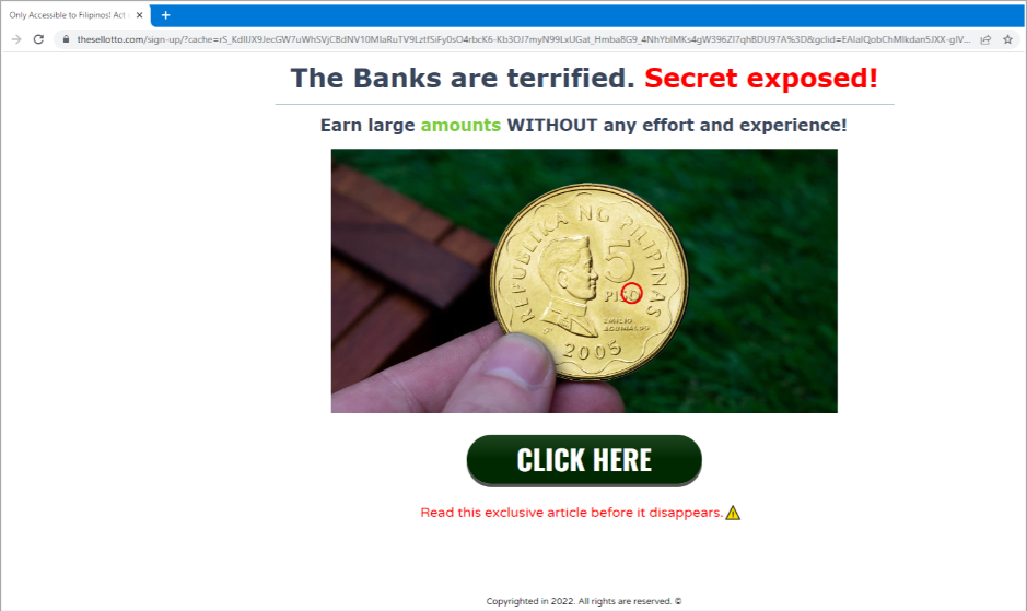 目标受众之外的用户和设备点击嵌入的“点击此处”按钮后,将被重定向到一个无害的网站。