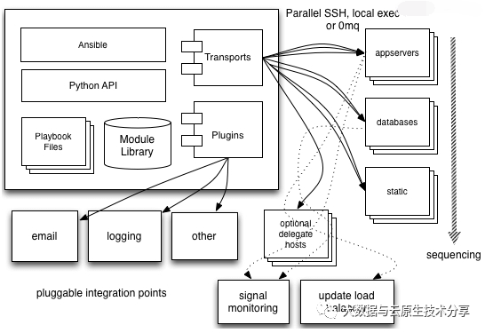 管理端支持local 、ssh、zeromq 三种方式连接被管理端,默认使用基于ssh的连接,这部分对应上面架构图中的连接模块;可以按应用类型等方式进行Host Inventory(主机清单)分类,管理节点通过各类模块实现相应的操作,单个模块,单条命令的批量执行,我们可以称之为ad-hoc;管理节点可以通过playbooks 实现多个task的集合实现一类功能,如web服务的安装部署、数据库服务器的批量备份等。playbooks我们可以简单的理解为,系统通过组合多条ad-hoc操作的配置文件 。release