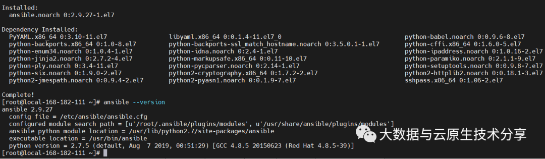 复制ansible 192.168.182.129 -m hostname -a name=192.168.182.1291.Ansible 的介绍和简单使用就先到这里了,还有一个ansible-playbook是非常重要,内容也是比较多,就放到下篇文章介绍了。
