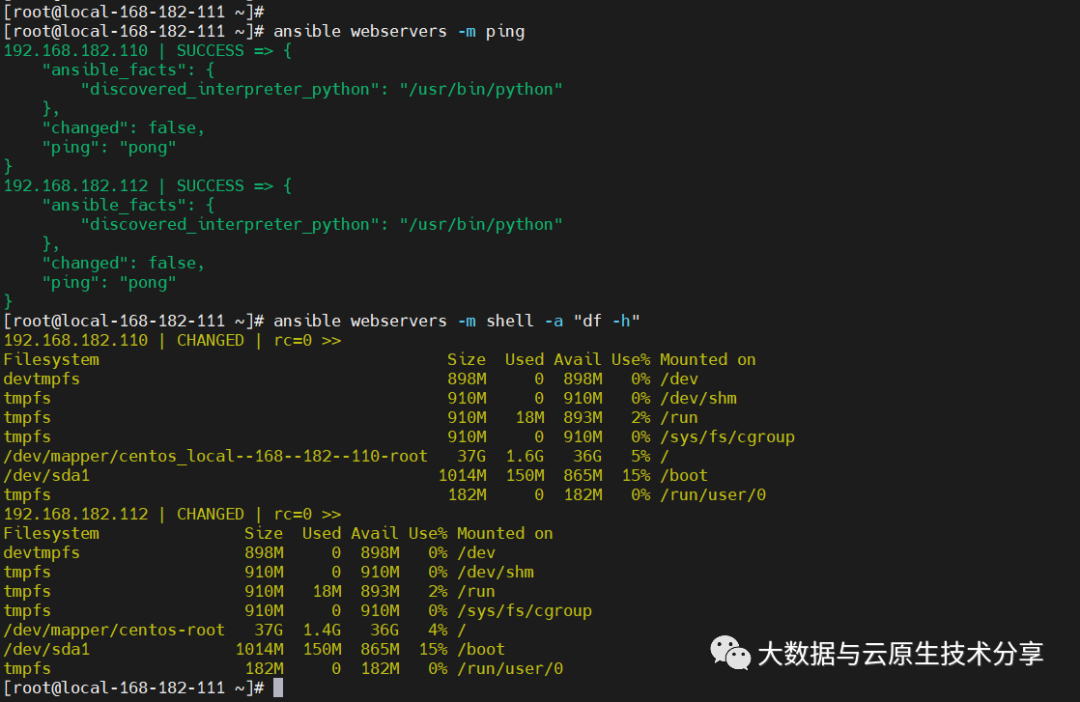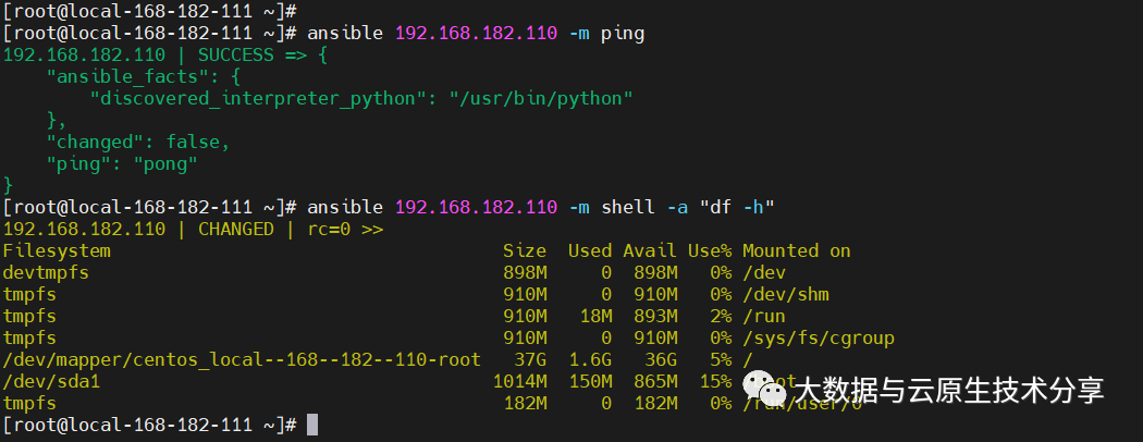 ansible 192.168.182.110 -m shell -a "df -h"1.2.3.4.