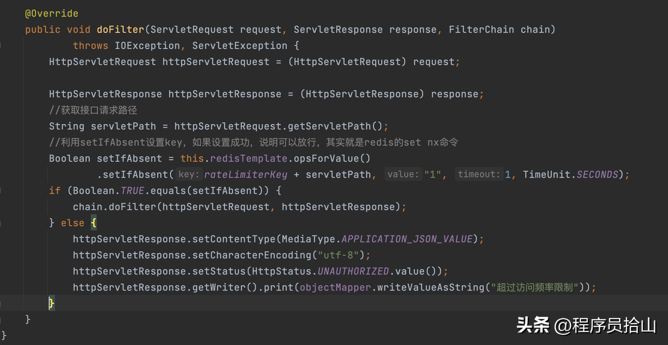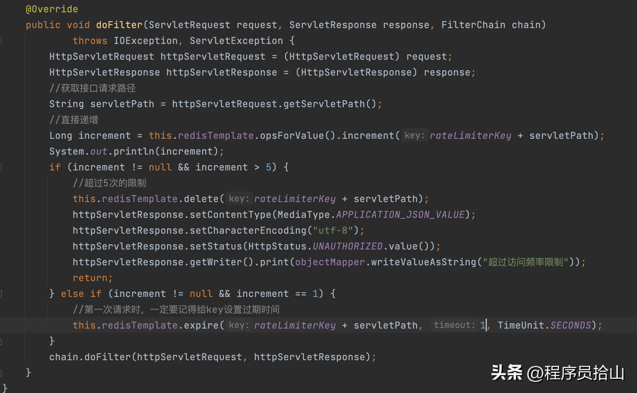 这里利用redis的increment和expire配合使用达到限流的目的。