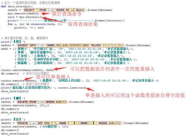综合而言,对于一些简单的需求,您只需要大致了解图中connect(...)、cursor(...)、execute(...)、fetchall()4个函数,辅以若干SQL命令的常识,您就可以用python方便的使用SQLite数据库了。